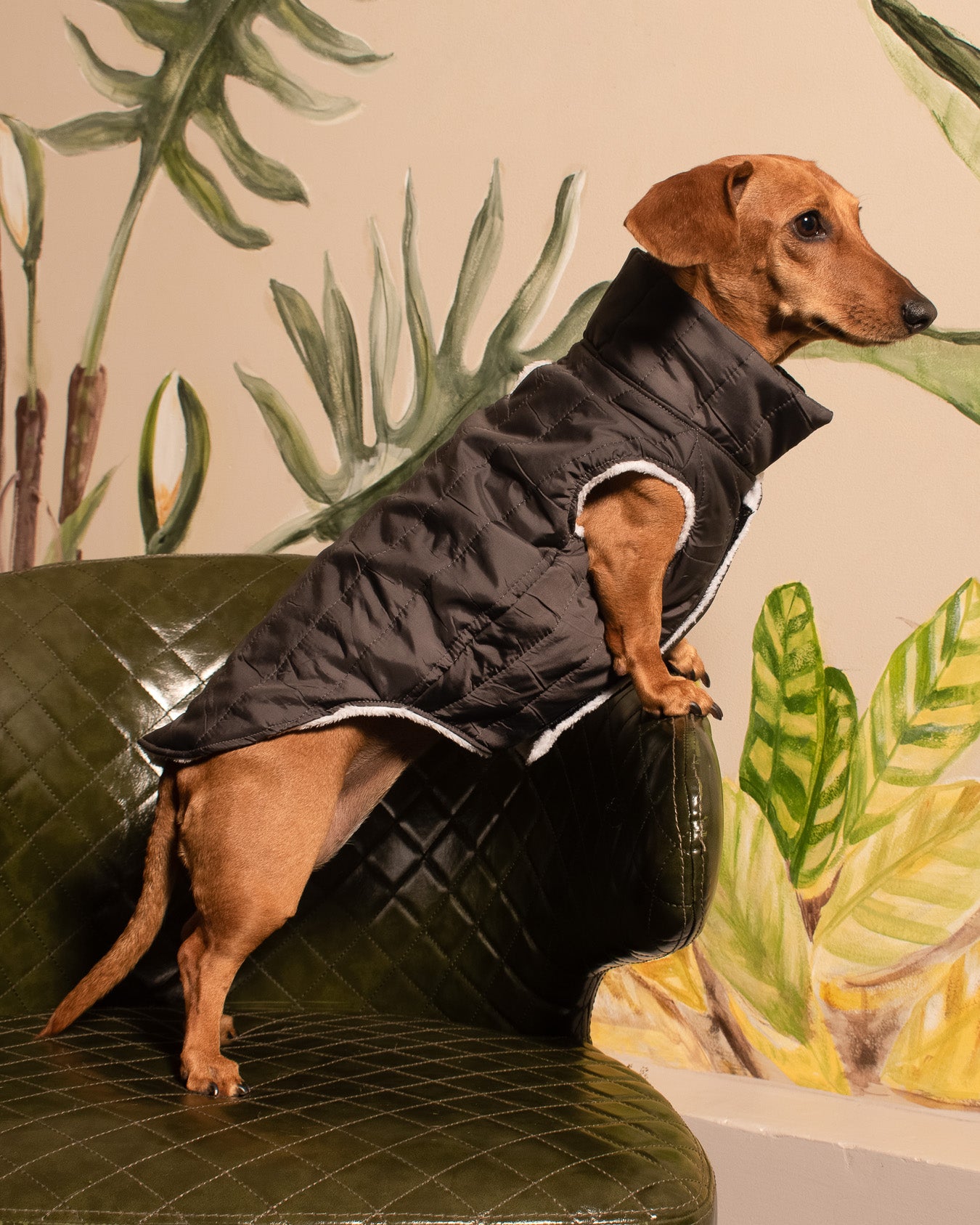 Confeccionada en tela acolchada de textura suave y refinada, incorpora un forro interno peludo ultra confortable que mantiene a tu compañero cálido incluso en los días más fríos.